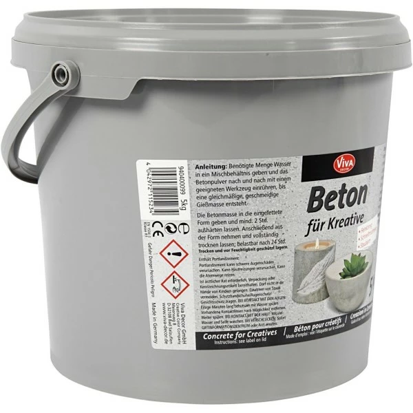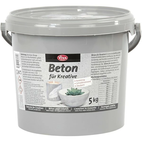 Ratio de mélange: 1,5 part d’eau pour 10 de béton créatif. Temps de séchage: environ 3 heures. Complètement sec après 1 ou 2 jours suivant l’épaisseur. Devrait durcir dans le moule .