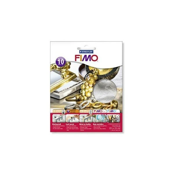 Description de Staedtler Fimoâ Accessoires Pack de 10 Feuilles métalliques Argent 14 x 14 cm
