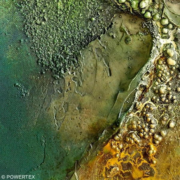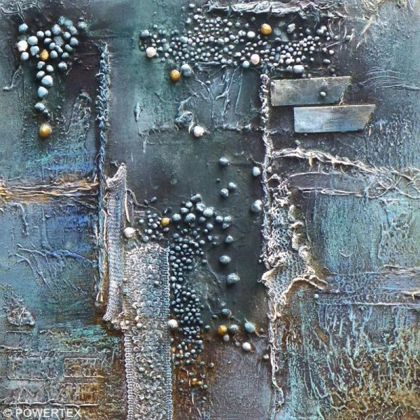 Les billes 3D de Powertex sont confectionnées dans un matériau poreux, ainsi ils pourront parfaitement se mélanger avec les médiums Powertex et conviendront au mélange de techniques telles que le Mixed Media.
